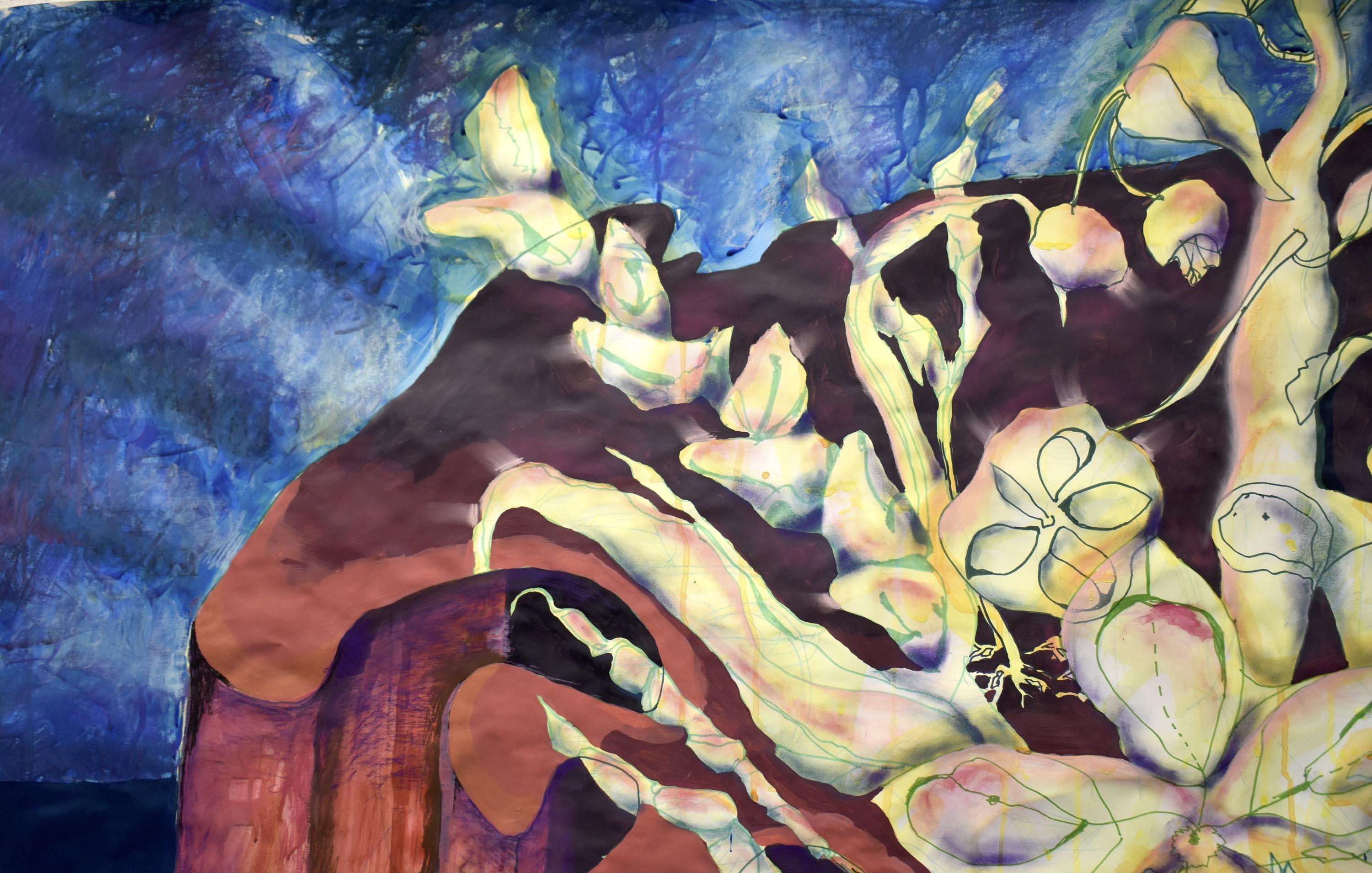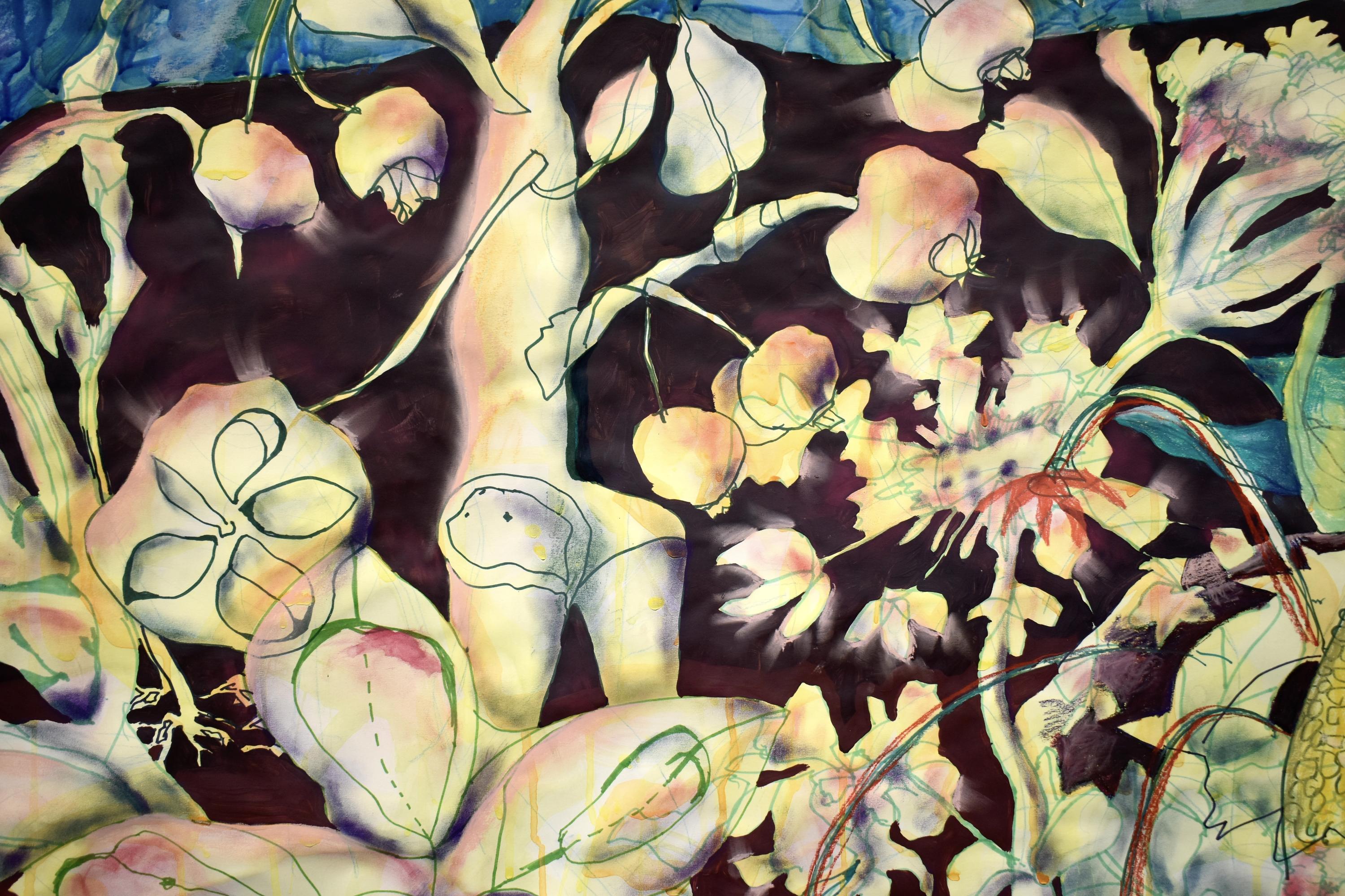 Acylics, sharpies, color pastel on paper