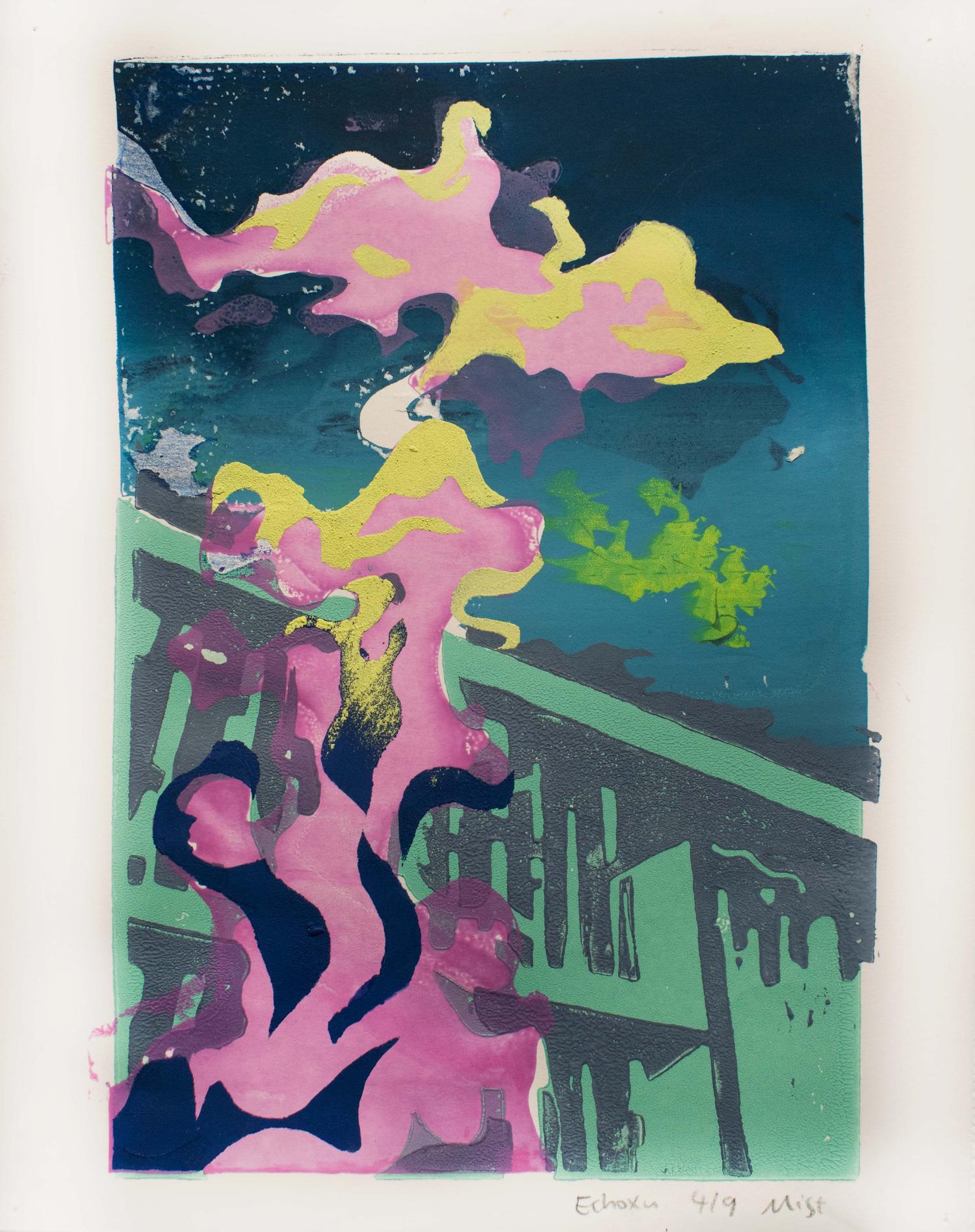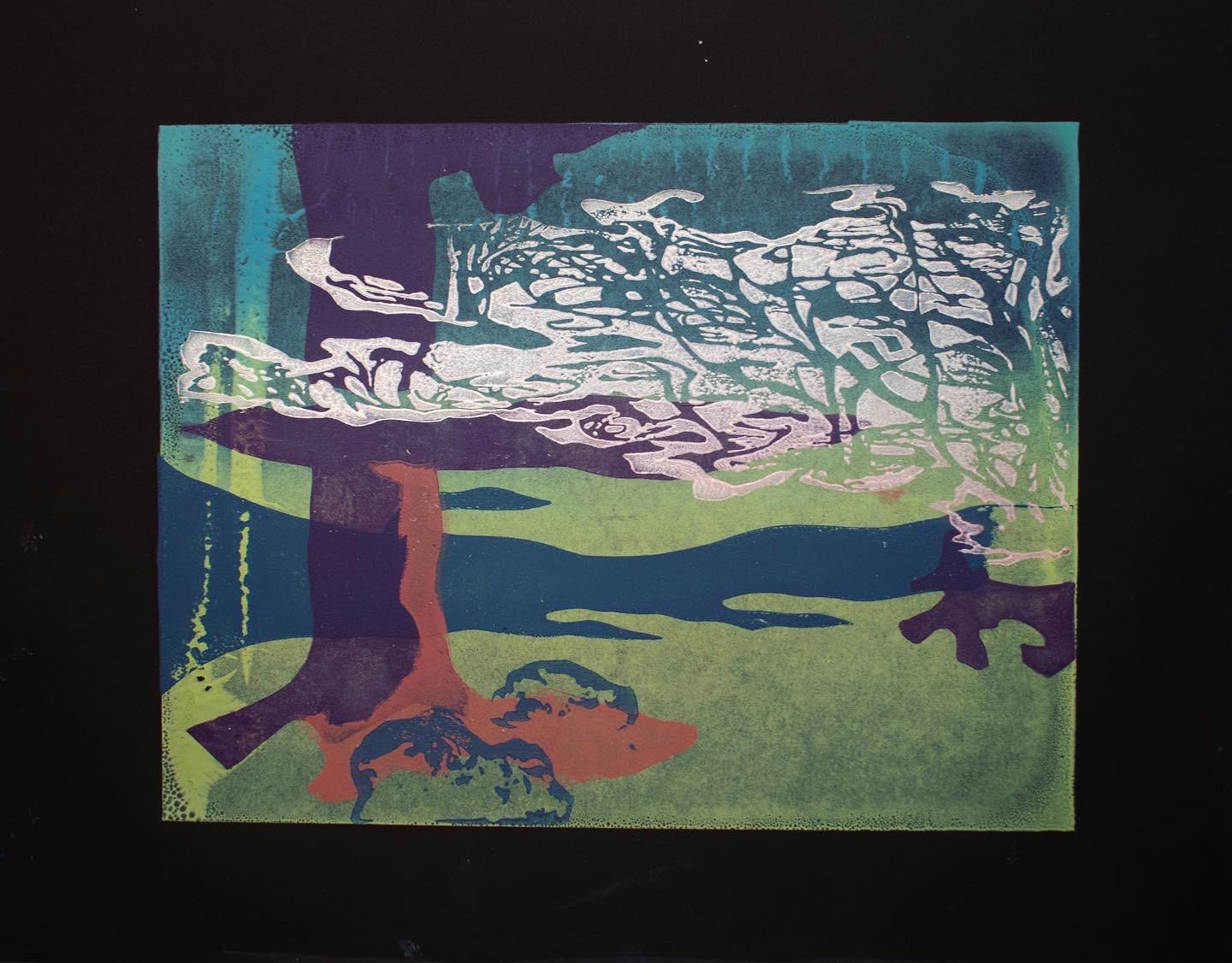 Watercolor silkscreen, wood block print
